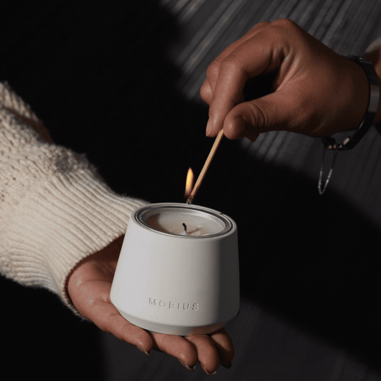 Mobius 膠囊蠟燭以單一水泥基座為核心,輕鬆替換膠囊。永續、優雅、可無限延續。