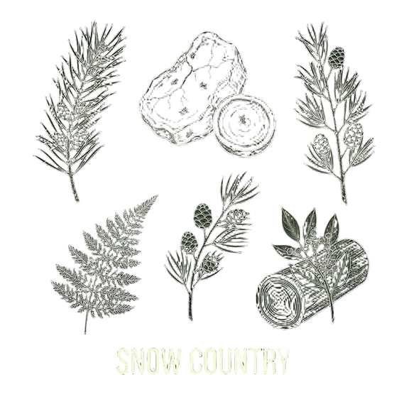 主調的雪松像是國土的疆界,把冰封定格成一道清晰的冷白;